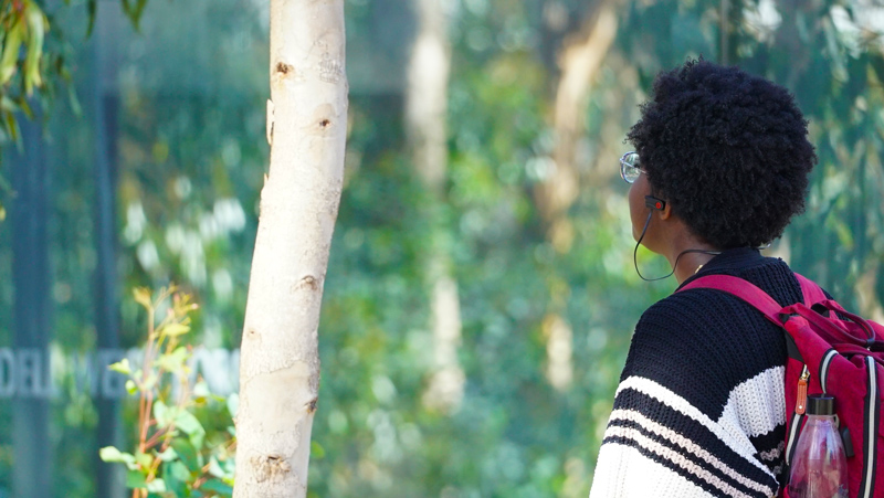 59 ACRES can be enjoyed at any time during daylight hours starting at the front of La Jolla Playhouse’s Potiker Theatre and ending at the Geisel Library. To experience the soundwalk, users will need to download the 59 ACRES app. Bring your own, fully charged mobile device and earbuds/headphones that will connect to your smartphone. You will be walking up to 1.5 miles round trip on the university campus which includes terrain of grass, pavement, gravel and natural soil. The walk has accessibility ramp alternatives whenever there are steps or stairs. Wear comfortable shoes and bring a jacket for inclement weather. From Geisel, it’s a 0.8 mile (approx. 15 min) walk back to La Jolla Playhouse.